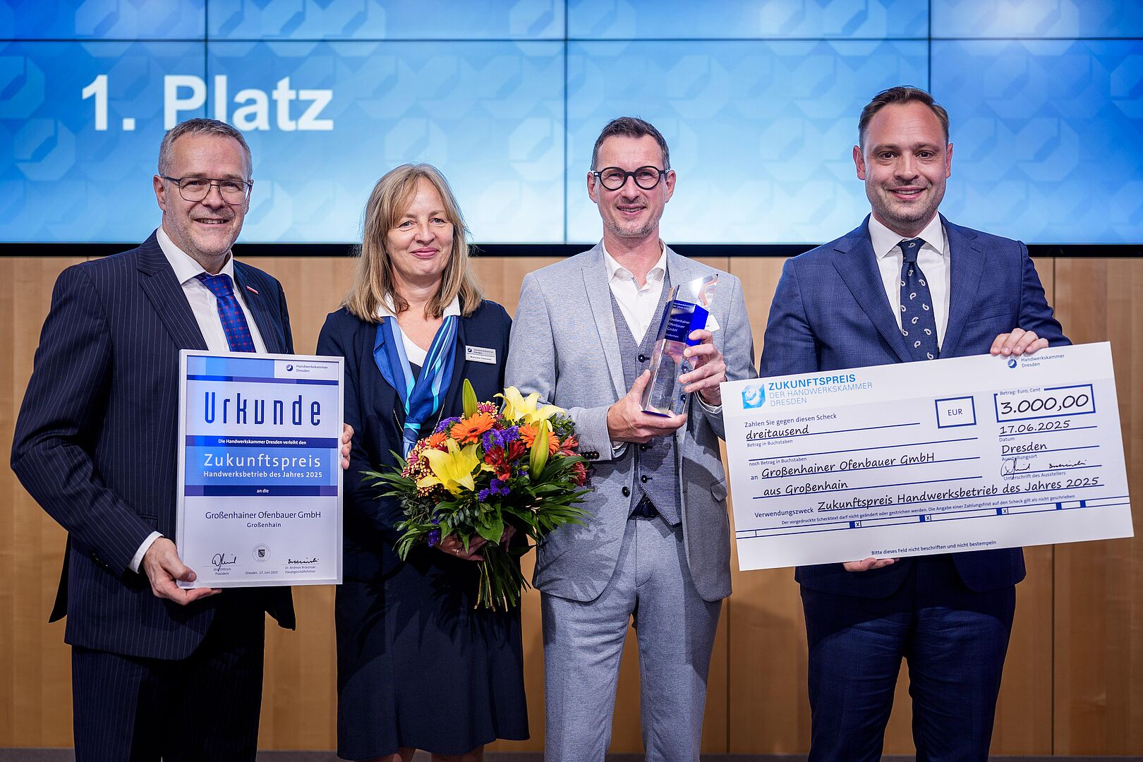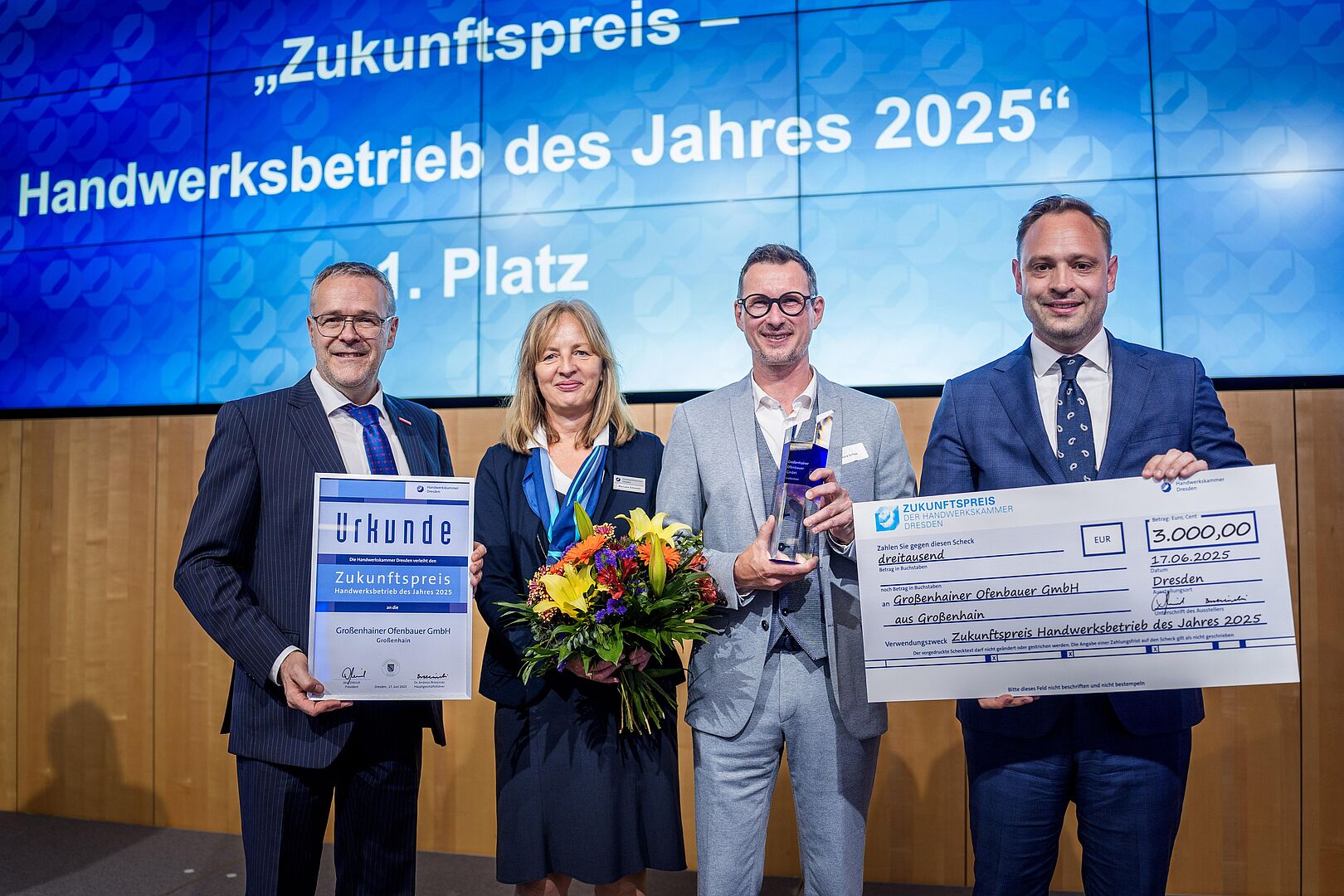 Innovative Ofenbauer, produktive Betonbohrer sowie Bio-Bäcker und Bio-Konditoren sind die Gewinner im Wettbewerb der Handwerkskammer Dresden um den „Zukunftspreis – Handwerksbetrieb des Jahres 2025“.